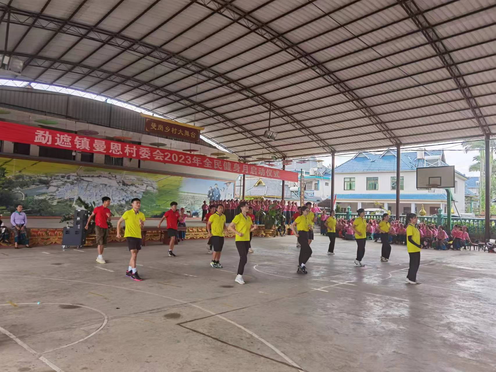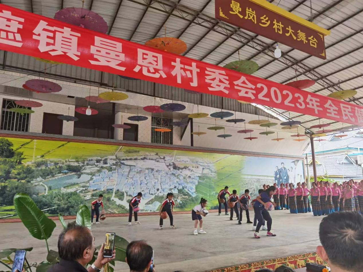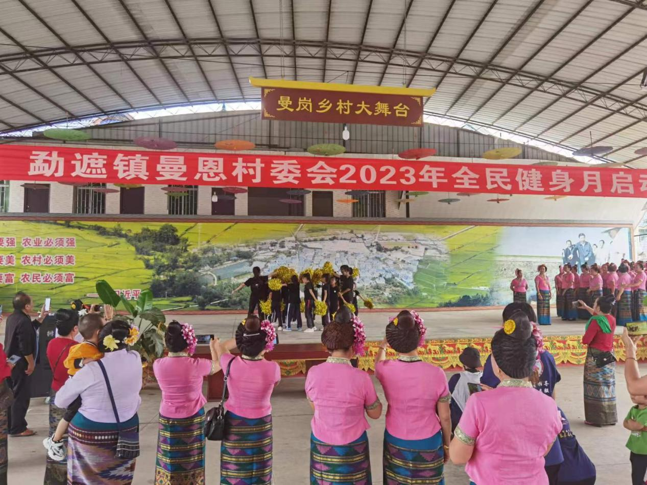 8月8日,是全国第15个“全民健身日”为此勐遮镇曼恩村委会举行了”2023年全民健身月启动仪式“,曼给村各小组进行了傣族舞蹈的比赛。同时学生们也对这次指导活动的教学成果展示,学生在舞台表演了趣味篮球操、花样跳绳和拉拉操,我们也为村民们带来了健身舞蹈”全民共舞蹈“,家长热烈的掌声是对孩子的肯定同时也是对我们工作的肯定。