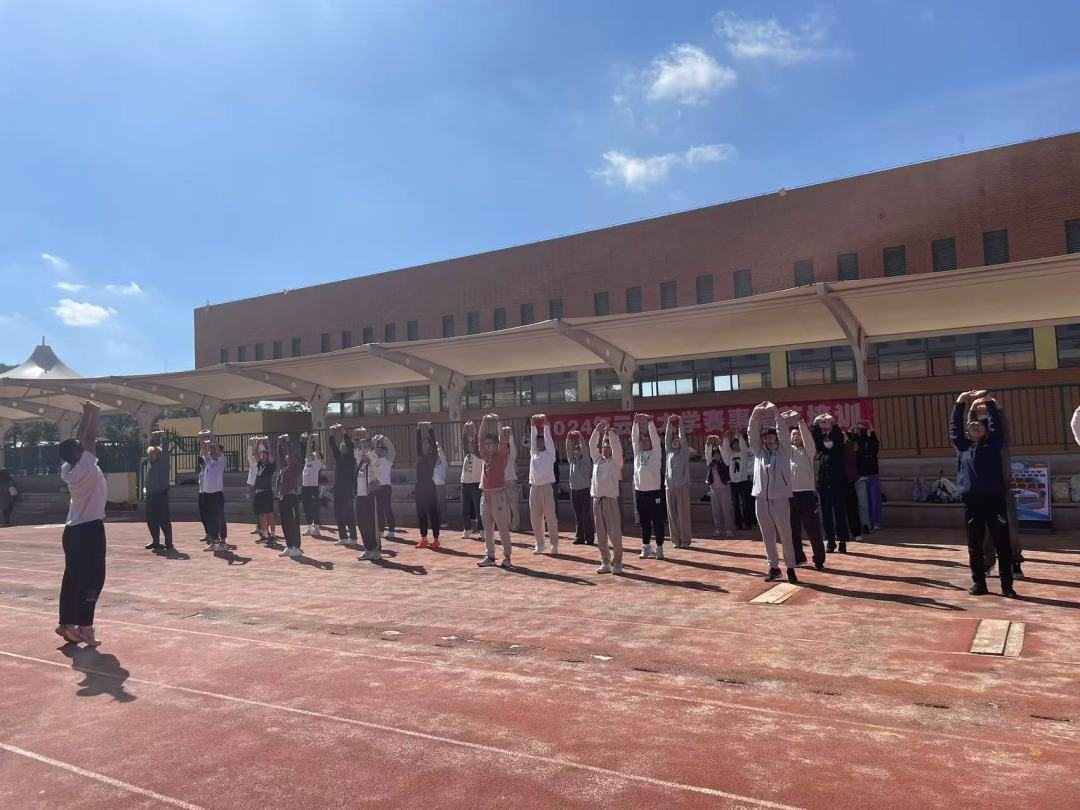 在热身阶段,同学们充满活力,积极配合教练的指导。大家相互鼓励,共同营造出一个积极向上的训练氛围。热身不仅让身体做好了准备,也让同学们的心态更加专注和投入。