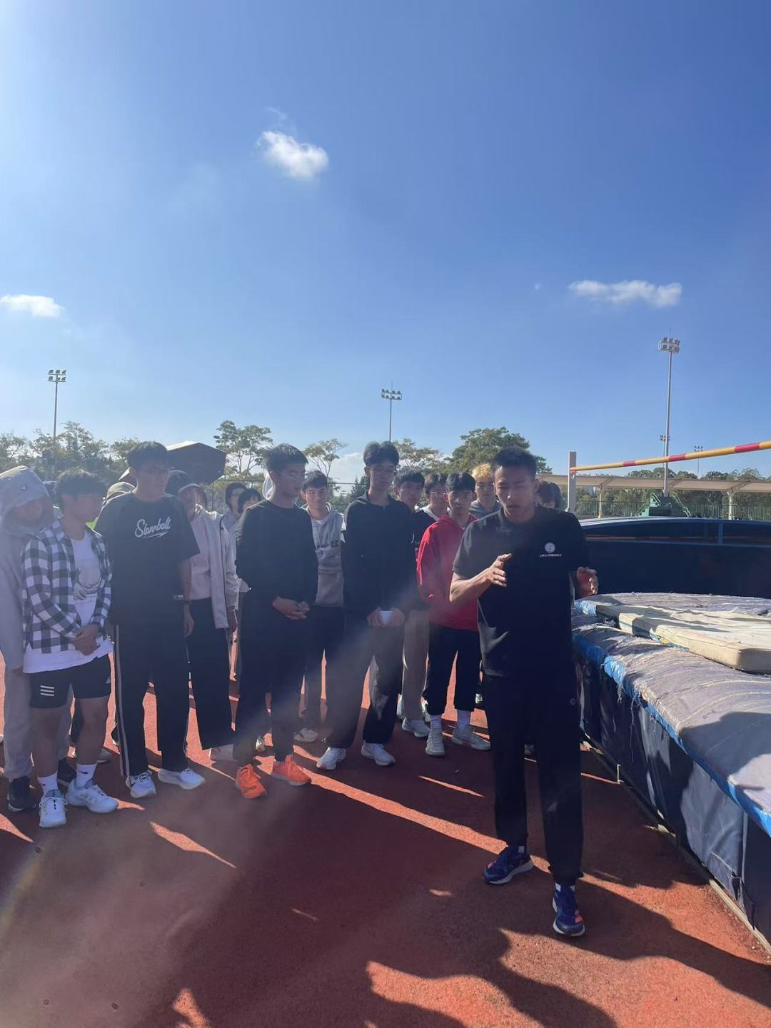 跳远教学过程中教练耐心地讲解着助跑、起跳、腾空和落地的动作要领,同学们认真模仿,不断调整自己的动作。在一次次的尝试中,逐渐掌握了跳远的一些入门技巧。不少同学意犹未尽,活动结束后依旧跟着教练不断学习更多的技巧。