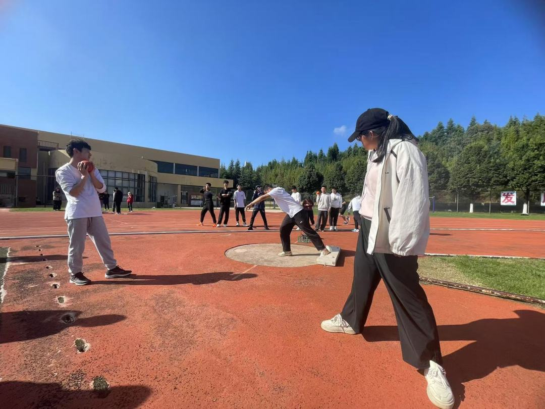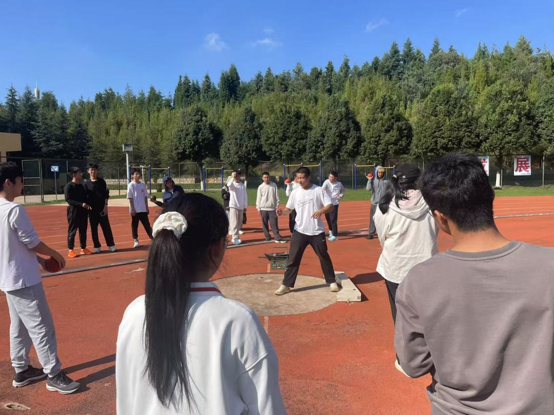 同学们围在教练身边,聚精会神,眼神中充满了对知识的渴望。在随后的实际练习中,大家充满干劲,一次次奋力投掷,对铅球有了更新的认知。