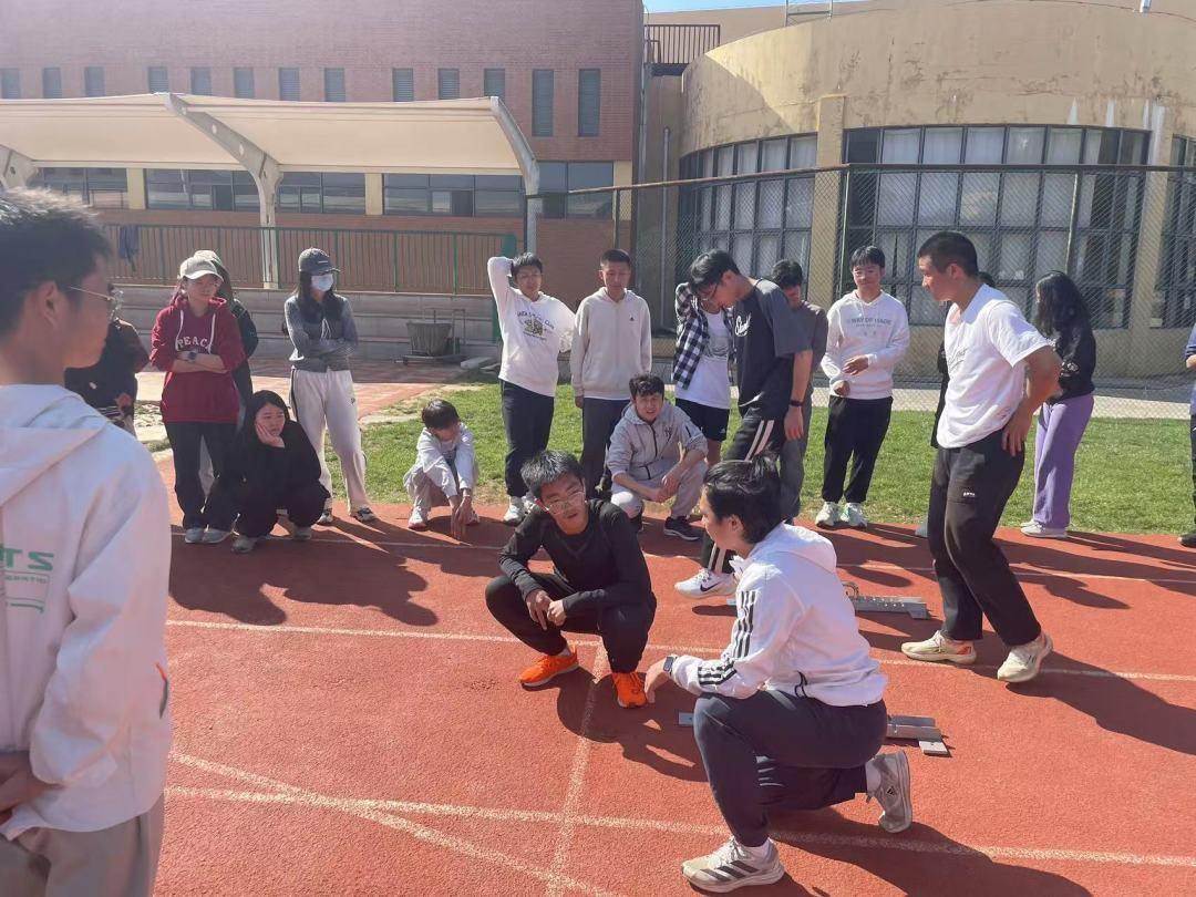 同学们认真聆听教练的讲解,陆续上前感受起跑器带来的奇妙感受,田径的魅力油然而生。