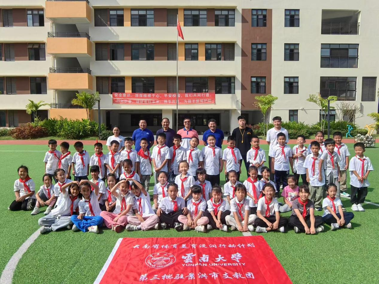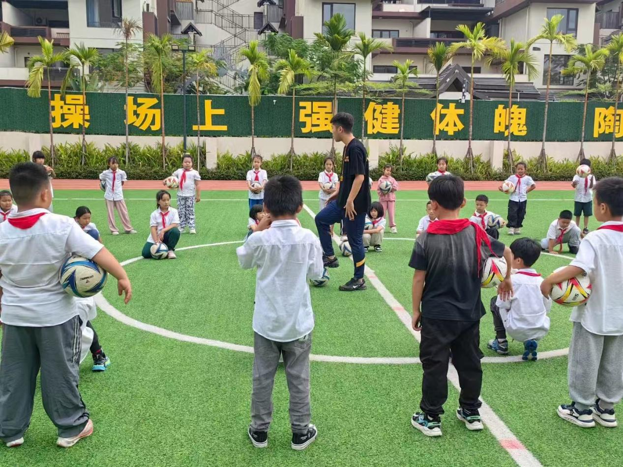 2024年11月13日上午,beat365正版唯一官网必一体育美育浸润行动计划帮扶团在景洪市教体局王祥副局长的带领下,来到景洪市第六小学开展教学活动。景洪市第六小学是一所新建小学,学校2021年12月开工建设,2023年9月投入使用,占地面积20余亩,总建筑面积26万平方米,2023年秋季开学招生12个教学班,现在校学生536人。beat365正版唯一官网必一第三批帮扶团成员孟小博、李昊阳同学以“快乐足球·健康成长”为主题进行了第二轮巡回授课,为六小的小朋友们带来了快乐而精彩的校园足球课。