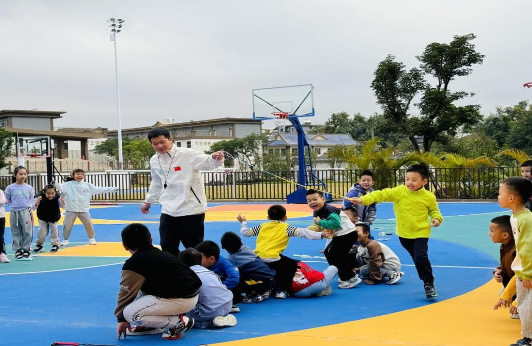 体育课堂上,向志杰老师和潘文梁老师凭借亲切又活泼的教态,营造出轻松愉快的课堂氛围,他们巧妙地将体育技能与趣味游戏相结合,让孩子们在“玩中思、思中学、学中乐”,有效激发学生学练的积极性。当孩子们一步步掌握技巧,纯真的笑容在他们脸上如花般绽放,那一刻,两位老师深切地感受到了体育教育独有的魅力与价值。同时,两位老师新颖且充满活力的教学风格,以及师生间自然和谐的良好互动,也给同学们留下了深刻印象。