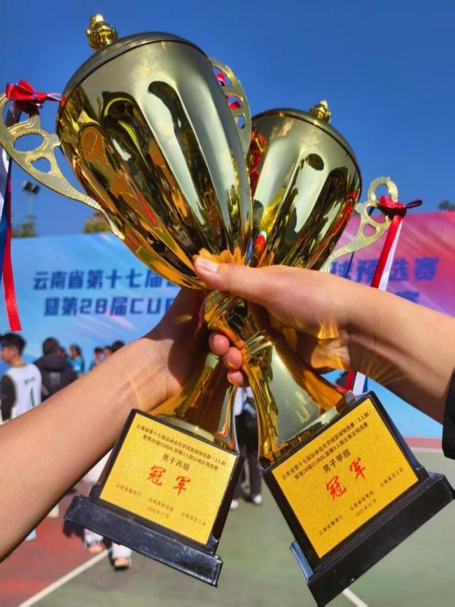 比赛中,球队展现了精湛的球技与成熟的战术素养,攻防有序,配合默契。从关键球的果断处理到整场比赛的节奏掌控,无不体现出日常扎实的训练成果。在连续多日的激烈角逐中,队员们凭借稳定的心态与敢打敢拼的作风,一路过关斩将,最终在男子甲组与丙组中双双夺冠,将两座沉甸甸的冠军奖杯荣耀带回云大。