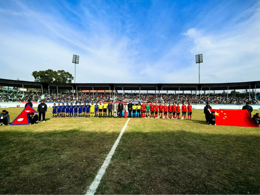 本届“贺岁杯”赛事受到双方高度重视。尼泊尔妇女、儿童与老年人部长施雷斯塔,中国驻尼泊尔大使馆临时代办周攀等出席活动并致辞。比赛中,我院师生秉持“友谊第一,比赛第二”的体育精神,奋力拼搏,以精湛的球技和默契的配合,展现出中国青年运动员的朝气与实力,赢得了现场万余名观众及线上七十余万人次的广泛好评。