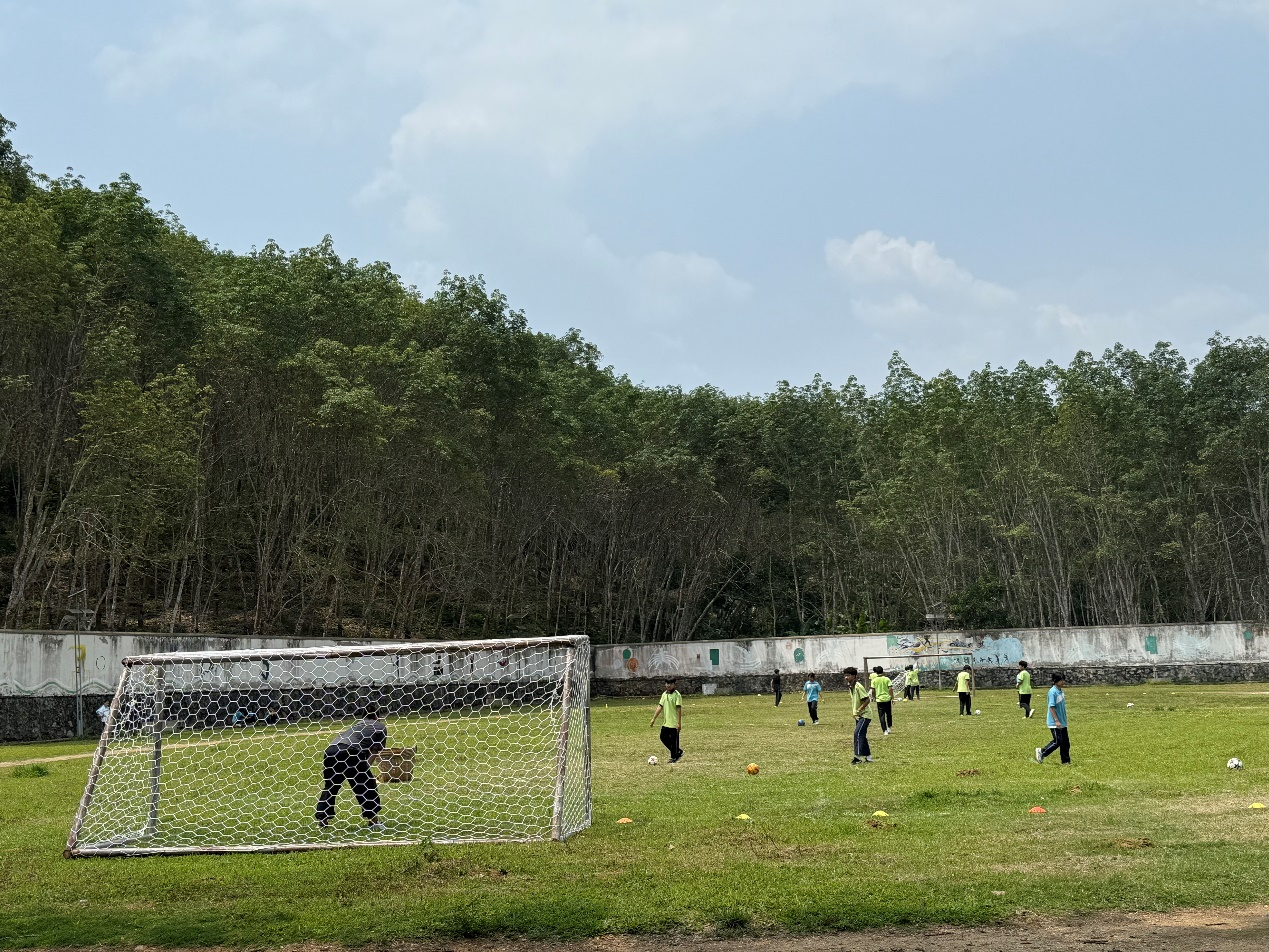 近日,在beat365正版唯一官网必一学子与帮扶学校体育教师的共同努力下,勐龙镇小街九年一贯制学校内一片长期闲置的荒地焕然一新,摇身变为一块标准化足球场。这一变化不仅为当地师生提供了优质的运动场地,更成为高校助力乡村教育振兴的生动实践。