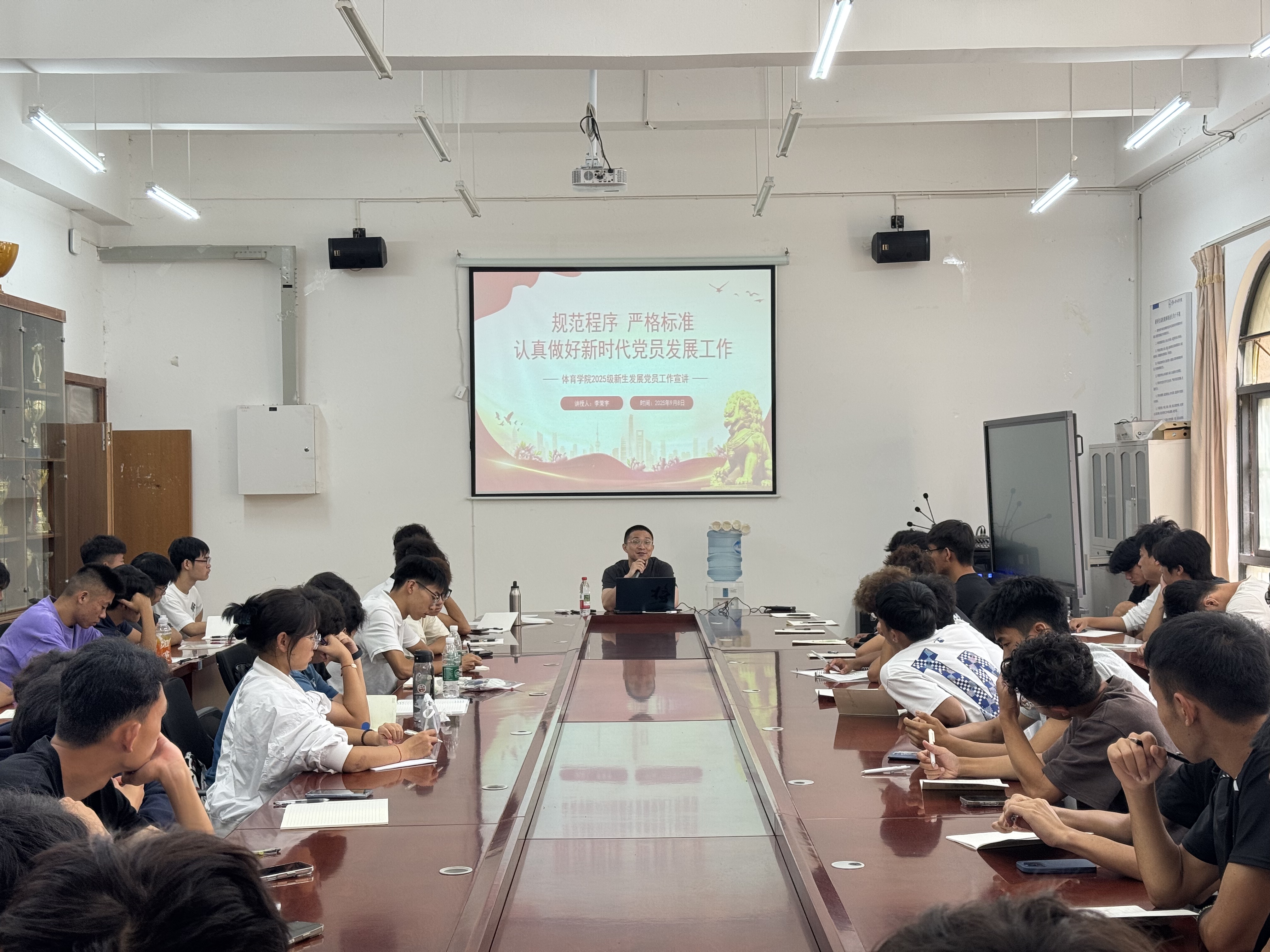 2025年9月8日上午,学院2025级本科新生入学教育在学院3103会议室举行。学院党委书记王帆老师以“传承红色基因,争做时代新人”为主题,为新生讲授了精彩的第一堂党课,并送上殷切寄语。随后,负责党团工作的李荣宇和袁凌晨老师分别为同学们详细讲解了入党入团的基本流程与要求,鼓励同学们积极向党团组织靠拢。最后,学院党委副书记刘正之老师就学生日常管理规定、校园安全、学风建设等方面进行了总结,希望同学们严守纪律、勤学笃行,度过充实而有意义的大学生活。