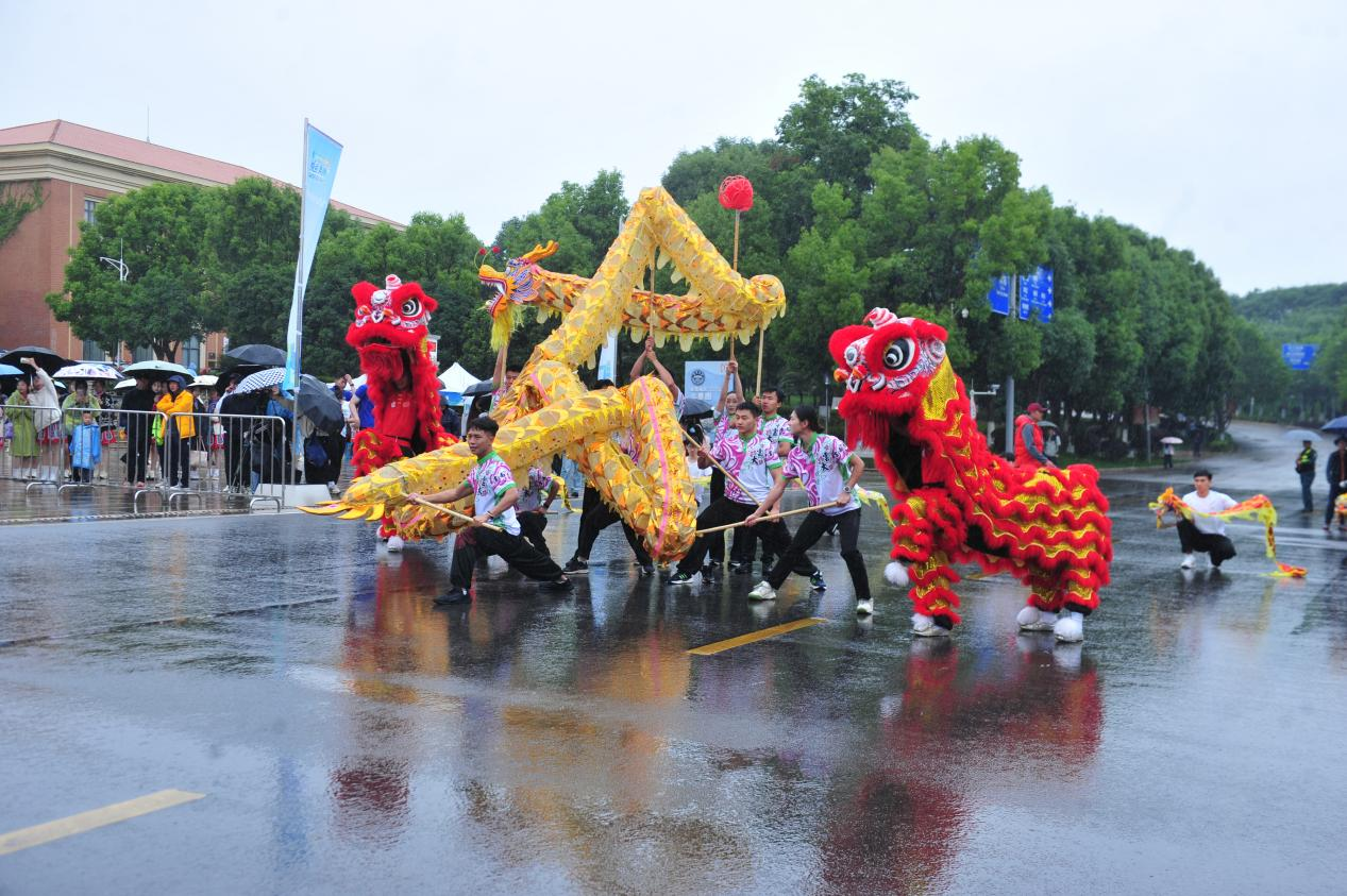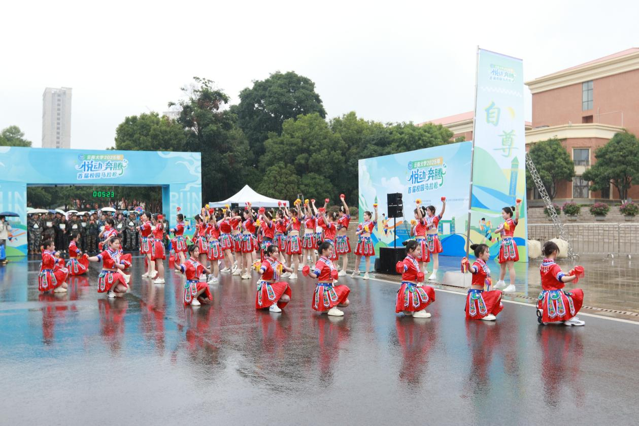 起跑前,学生团队表演了精彩的舞龙舞狮和体育舞蹈《云岭牛仔·恰步春城》,beat365正版唯一官网必一师生带领参赛选手做热身运动。