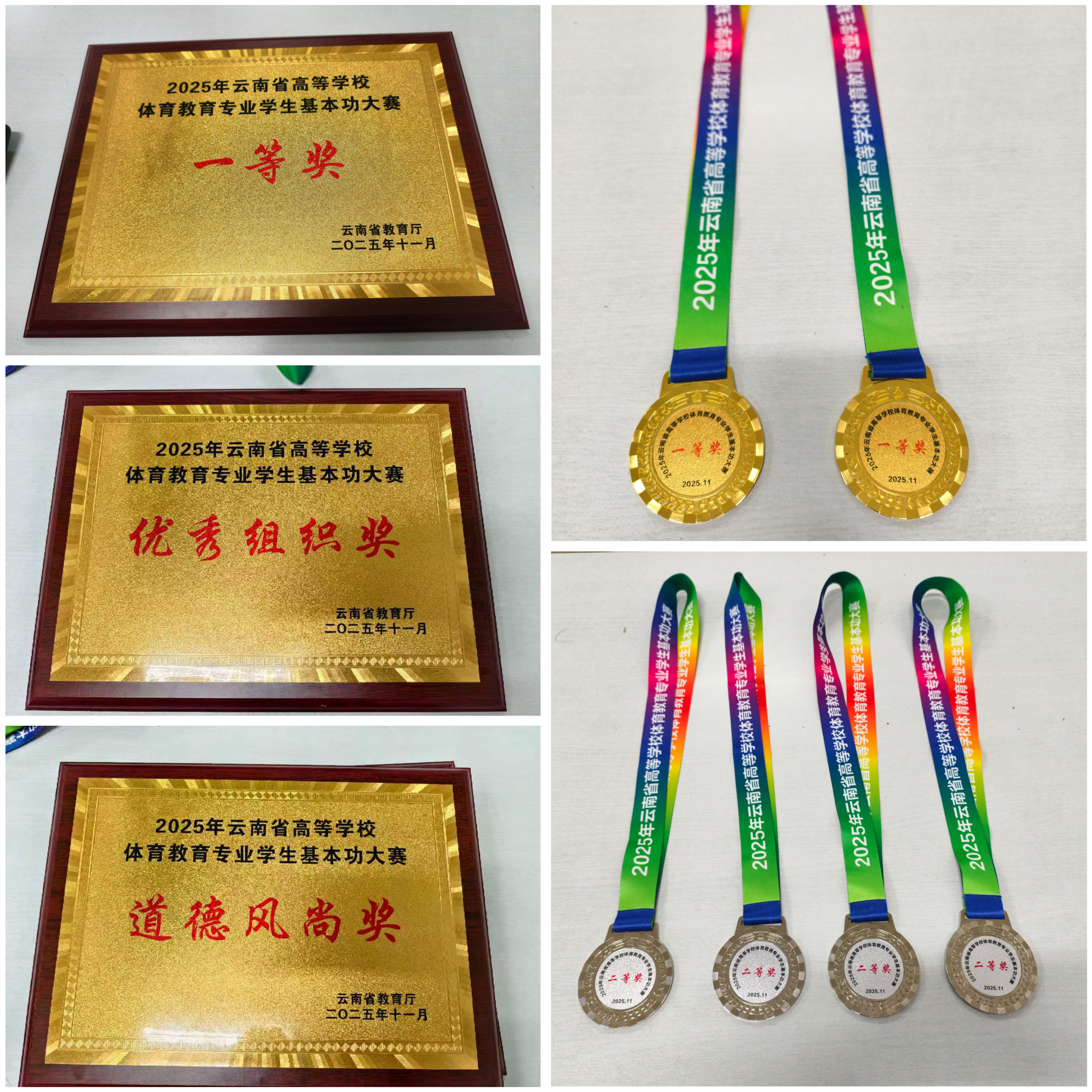 2025年11月3日,云南省高等学校体育教育专业学生基本功技能大赛在红河学院圆满落幕,来自省内20所高校的120名体育教育专业学生参加了此次大赛的角逐。beat365正版唯一官网必一代表队凭借扎实的专业功底、精湛的运动技能和出色的团队协作,从全省参赛队伍中脱颖而出,一举斩获团体一等奖,同时摘得个人一等奖2项、个人二等奖4项,荣获优秀教练员、优秀组织奖、道德风尚奖,充分展现我校体育教育专业人才培养的丰硕成果。