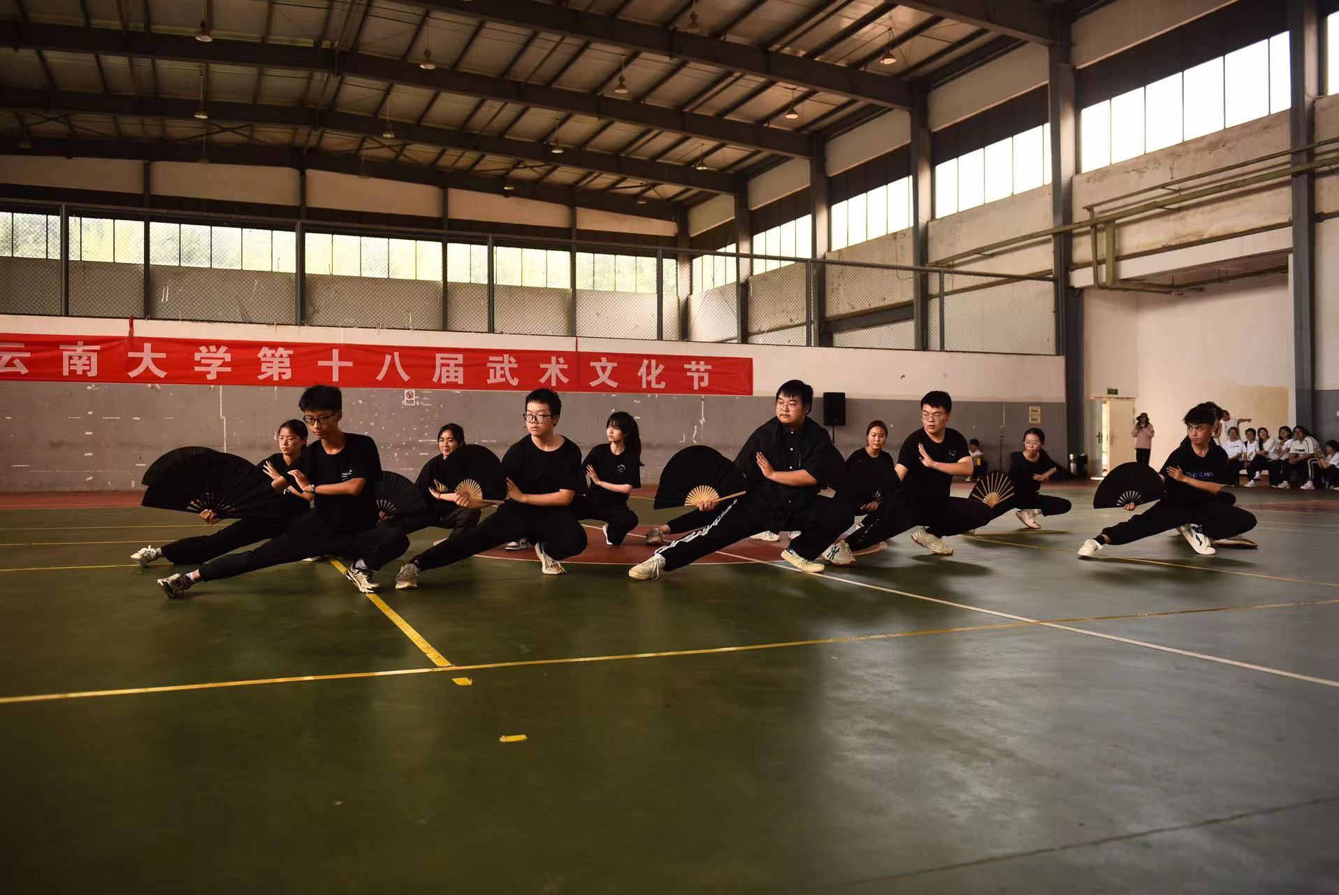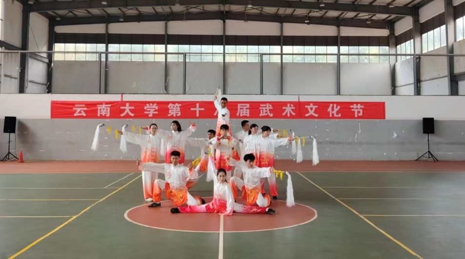 本届武术文化节以武术表演和比赛的形式开展,并邀请了云南省武协副秘书长、武术套路国家一级裁判刘波老师和武术套路国家一级裁判李宇瀚老师作为本次活动的特邀裁判,为每一支队伍指导评分。近300名来自不同学院的同学们同台展示他们的武术技艺。
